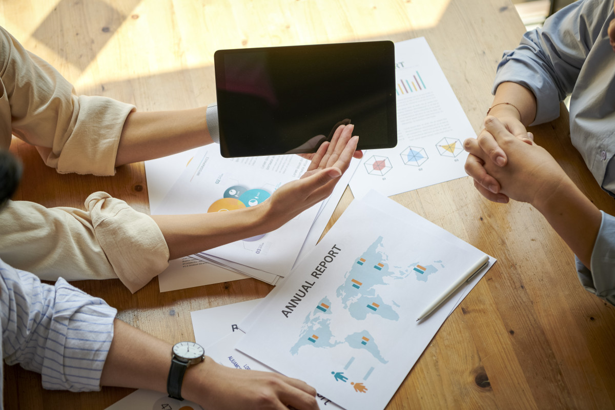 직접 방문한 고객님께 요청하신 서비스를 설명해 드리는 중입니다.